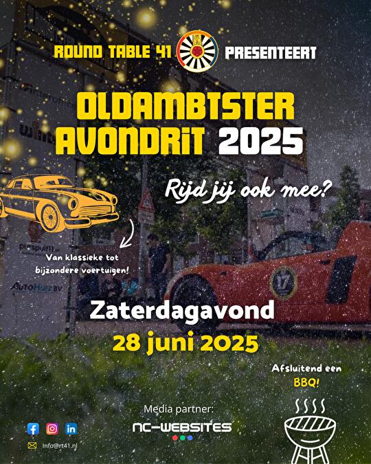 Op zaterdag 28 juni 2025 vindt de elfde editie van de Oldambtster Avondrit plaats. De route wordt dit jaar weer georganiseerd door Business Rally Events (BRE), bekend van de Beaujolais Trophy en vele andere ritten. Deelname staat open voor youngtimers, klassieke auto's, cabriolets en andere bijzondere voertuigen.